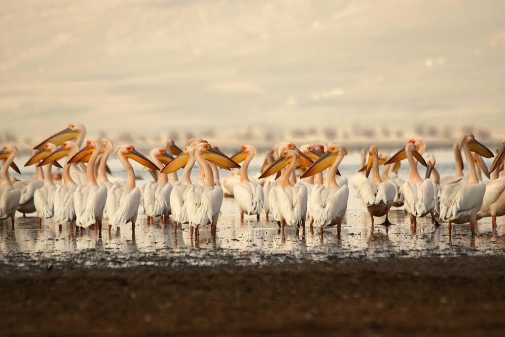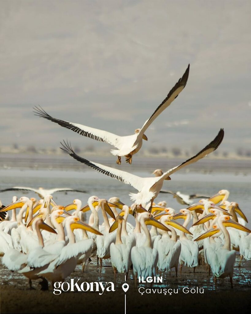 Afrika’dan Çavuşçu Gölüne gelen Ak Pelikanlar, bahar aylarının gelmesi ile Avrupa ve Rusya’ya doğru göç ediyor. Bölgede araştırmalarını sürdüren Selçuk Üniversitesi Kuş Gözlem Topluluğu üyeleri, göç yolundaki bir pelikanın, günde 1 buçuk ile 3 kilogram arasında balık tükettiğini belirtti.
