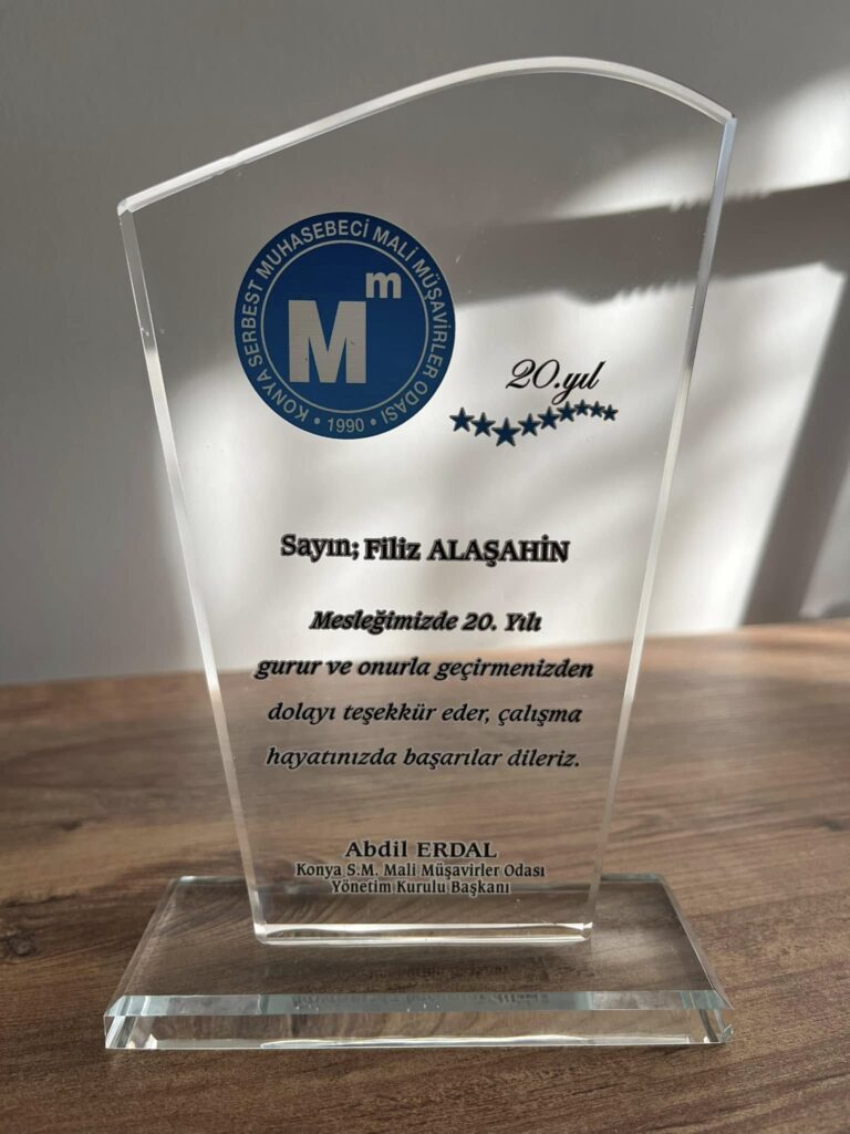 Mali Müşavir Muhasebeci Filiz Alaşah “Konya Serbest Muhasebeci Mali Müşavirler Odası Mesleğimde 20.yılı doldurmam nedeniyle verilen plaketi Konya Defterdarı Behzat ER ve Konya SMMM Odası Yönetim Kurulu Başkanı Abdil ERDAL ın elinden aldım. Her zaman gönlümüzde başkan olarak kalacak Abdil Erdal beye ve tüm yönetim kurulu üyelerine teşekkür ederim. Hayatınızda iyi insanlar ve güzel anılar biriktirelim” dedi.