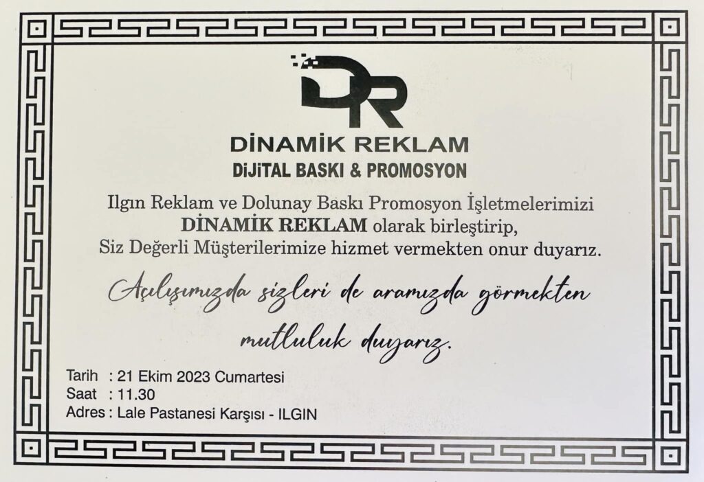 Dianmik Reklam “Ilgın da uzun yıllardır reklam konusunda faaliyet gösterdiklerini belirterek uygun fiyata kaliteli işler ortaya koyan işletmelerimiz artık birleşti. Daha güçlü ve hızlı hizmet ile reklam ve promosyon alanındaki ihtiyaçlara cevap vereceklerini söylediler.