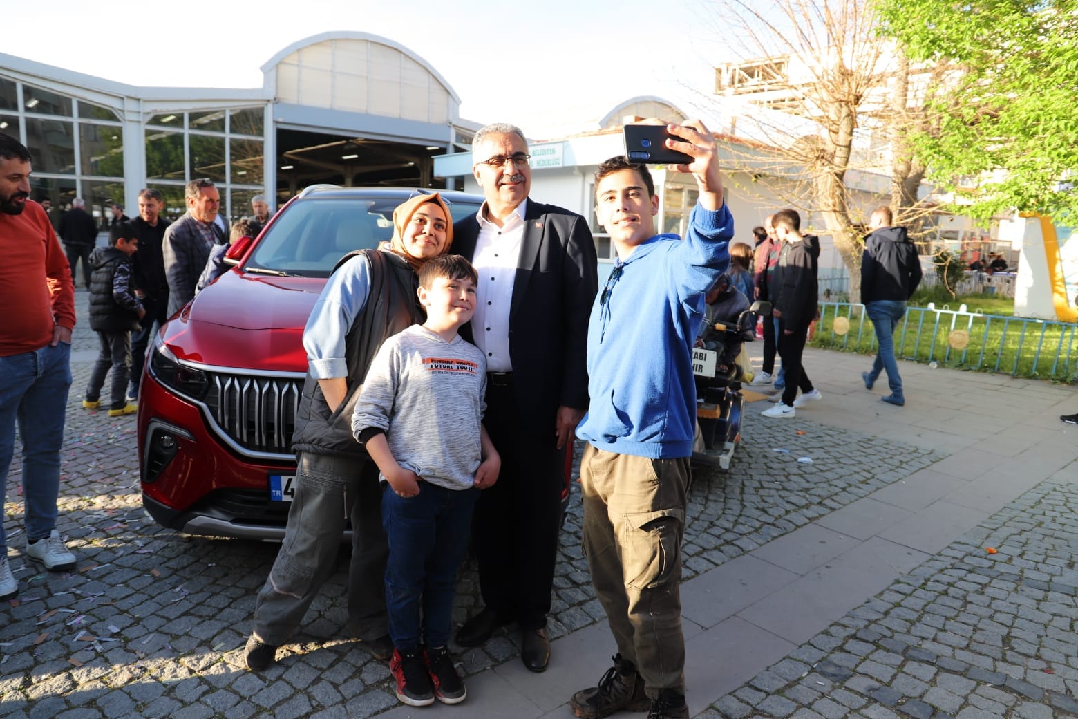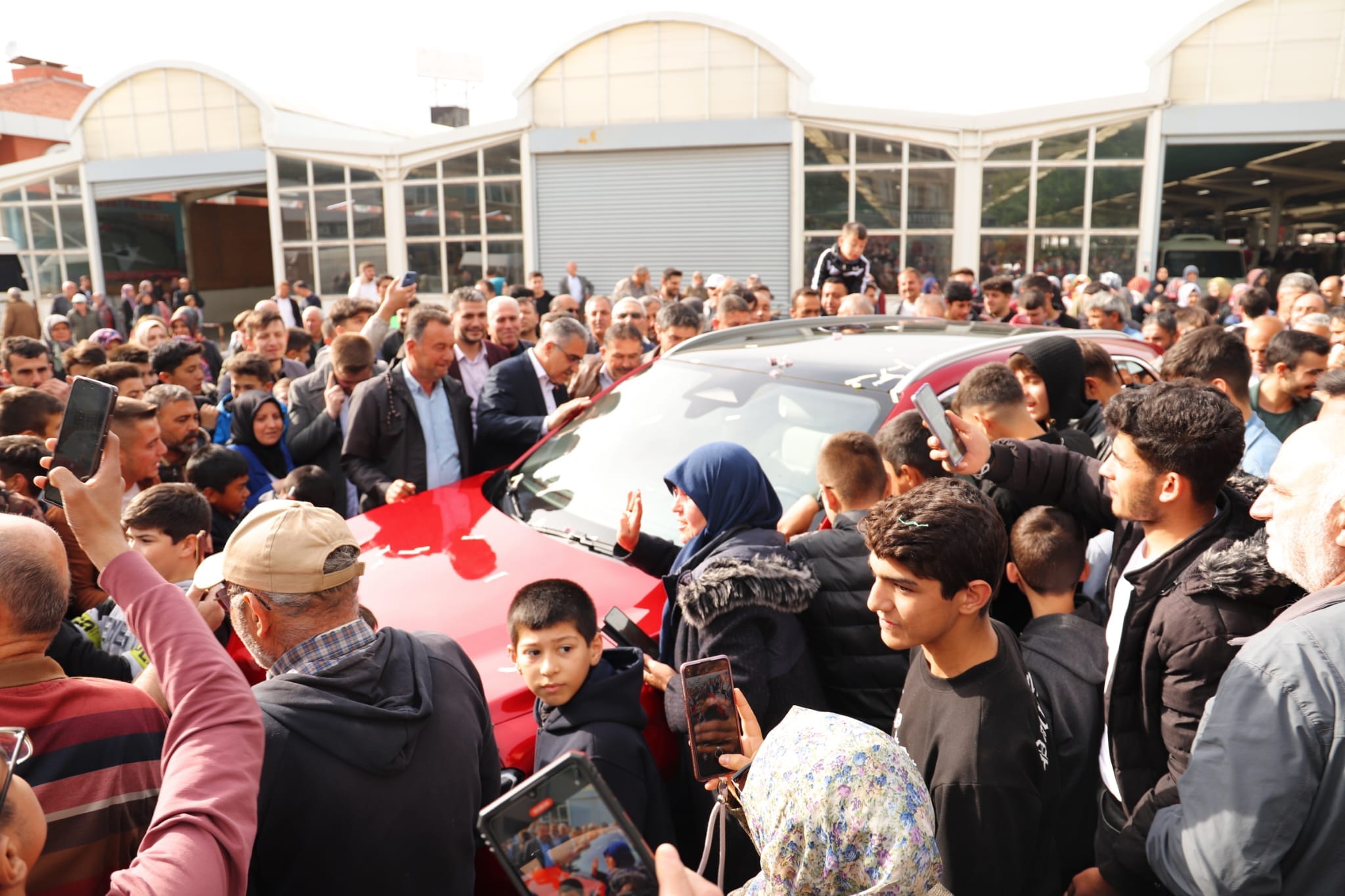 Ilgın Kapalı Pazar Meydanı’nda sergilenen Togg’un cep telefonuyla fotoğrafını çekenler, sosyal medya hesaplarından paylaştı.